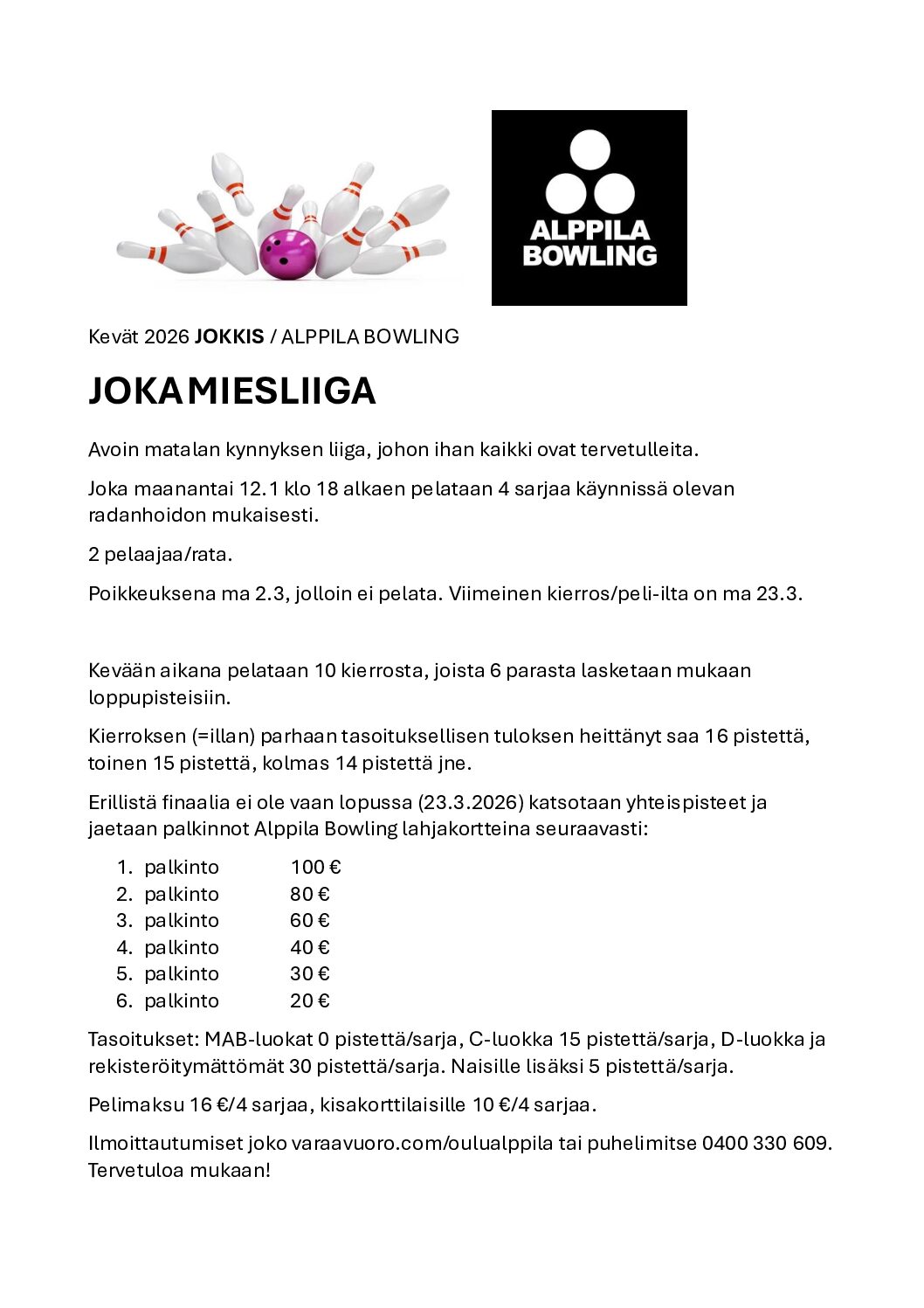 © Alppila Bowling Oy 2026 | Evästeasetukset